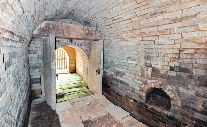 洪保墓内部,位于南京市江宁区祖堂山。尽管古墓曾遭到盗劫,但里面出土了非常完整的《洪保寿藏铭》。和其他墓志不同的是,2010 年南京祖堂山出土的《寿藏铭》是洪保生时所立,还详载与郑和相关的航海事迹,为研究郑和船队的重要文物