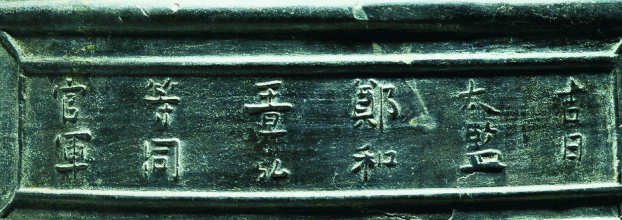 郑和铜钟(局部),铭文为“吉日,太监郑和、王景弘等同官军”。从姓名排序上看,王景弘地位仅次于郑和