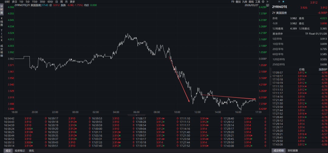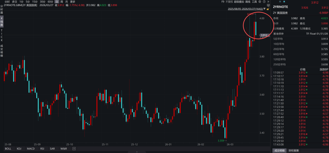 回到这一轮,2026年3月27日的两年美债利率已经出现了异常,市场的平均心态开始出现变化,流动性偏好开始快速攀升。显而易见,美国资本市场终于开始担心美以伊冲突的烈度再上一个台阶。