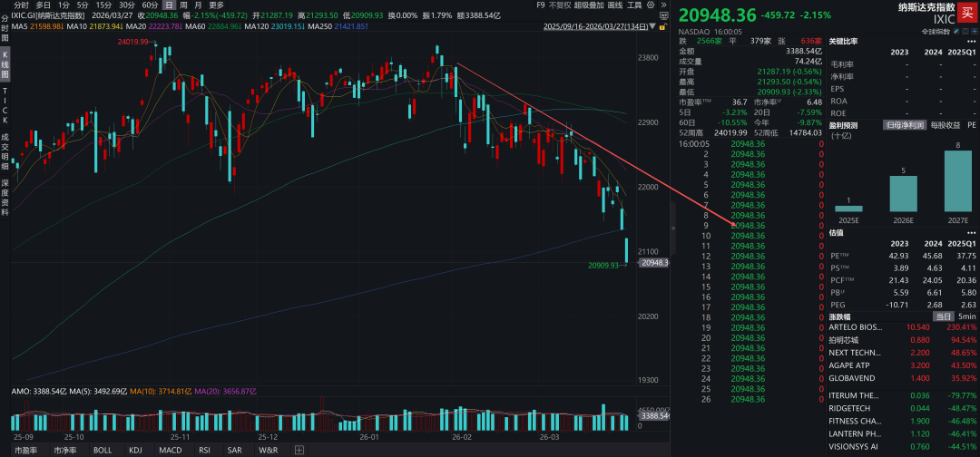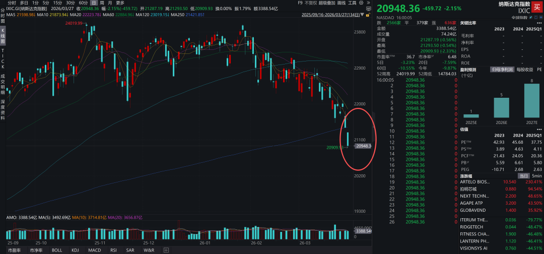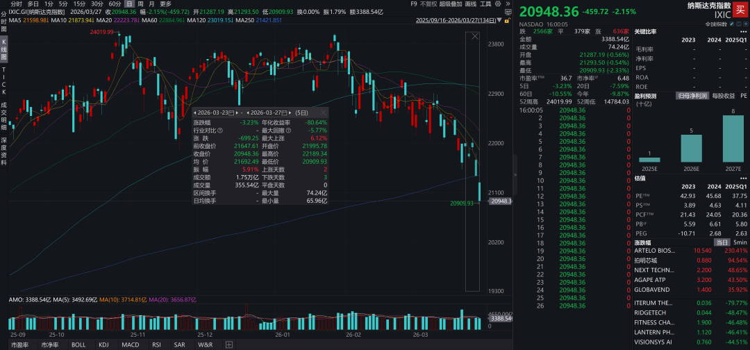 如上图所示,本周美股表现比较差,纳斯达克指数一周回落3.23%,尤其是最近两个交易日,连续两次录得2%+的跌幅。